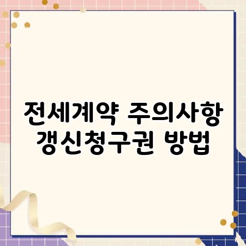 갱신청구권을 행사할 때는 몇 가지 주의사항이 있습니다. 먼저, 계약 만료 6개월 전에는 갱신청구권을 행사해야 하며, 이를 놓칠 경우 자동으로 계약이 종료될 수 있습니다. 또한, 임대인과의 관계를 고려하여 원활한 소통이 이루어져야 합니다. 세입자는 자신의 권리를 알리는 동시에 임대인과의 좋은 관계 유지를 위해 정중하게 접근하는 것이 중요합니다.